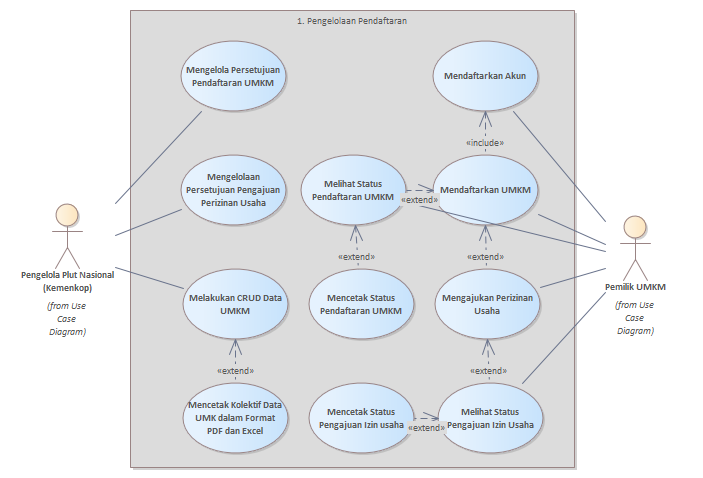 Model / Use Case Diagram / 1. Pengelolaan Pendaftaran dan Perizinan Usaha / 1. Pengelolaan Pendaftaran dan Perizinan Usaha